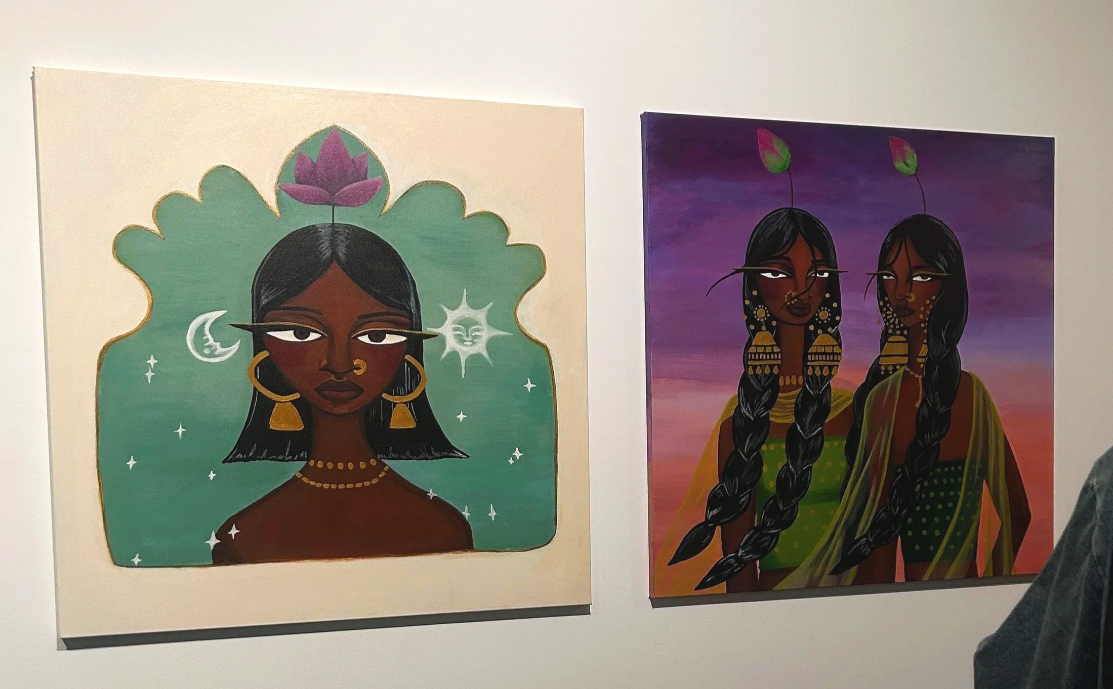My favourite piece has to be a painting I made called 'Sunset Babes'. It's just two brown baddies wearing huge jhumkas, with a sunset background – just women existing freely and wearing whatever they want, performing no specific role for society.